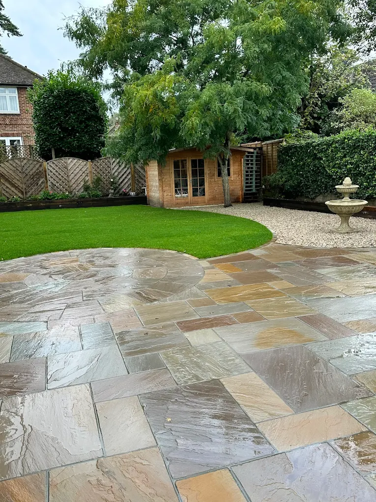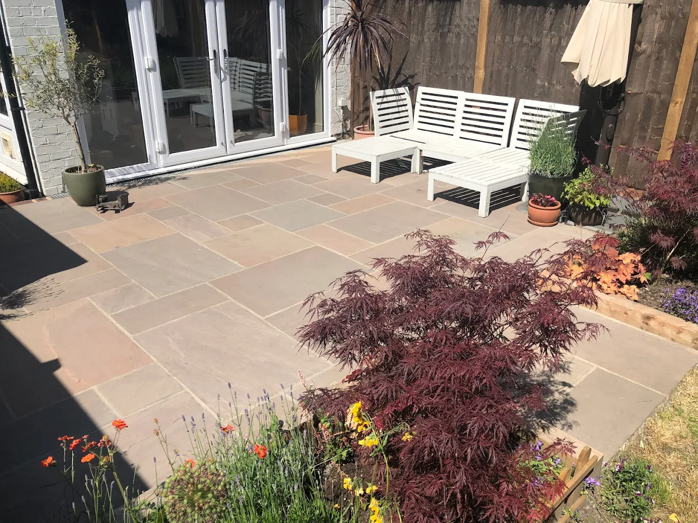 Our sandstone patios in Farnham bring warmth and natural character to any garden. Each slab has unique colour variations, giving your patio a timeless, rustic charm. We use high-quality sandstone that’s both durable and easy to maintain for long-lasting beauty.